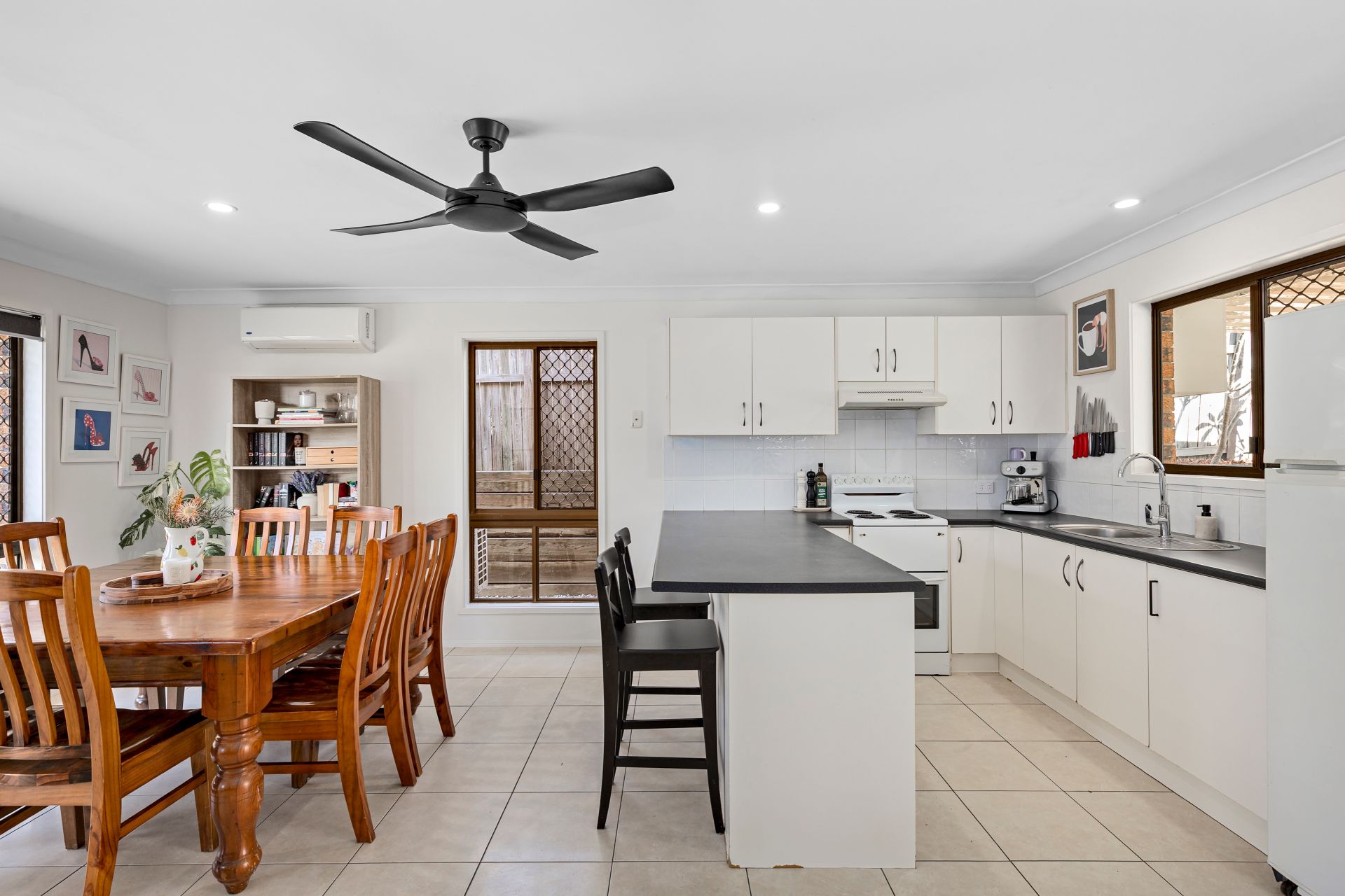 Open plan lounge, dining, and kitchen zones create an inviting, interconnected flow ideal for family living and entertaining, enhanced by large windows that capture natural light throughout the day.