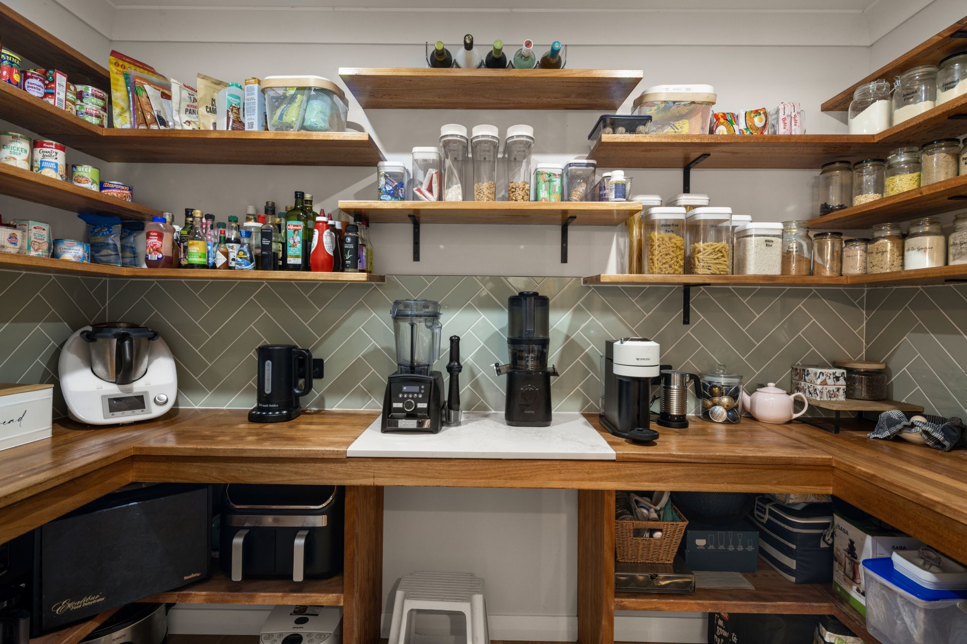 At the centre of the home sits a statement kitchen designed for both functionality and entertaining — expansive stone island, 900mm gas cooktop with integrated teppanyaki grill, walk-in pantry, soft-close cabinetry and seamless connection to the open-plan living and dining zones. Natural light fills the home, with two generous living areas providing space for growing families to spread out comfortably.