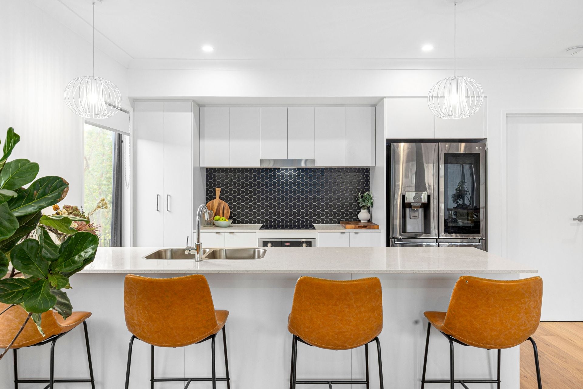 • Modern kitchen with stone benchtops, quality appliances, and breakfast bar