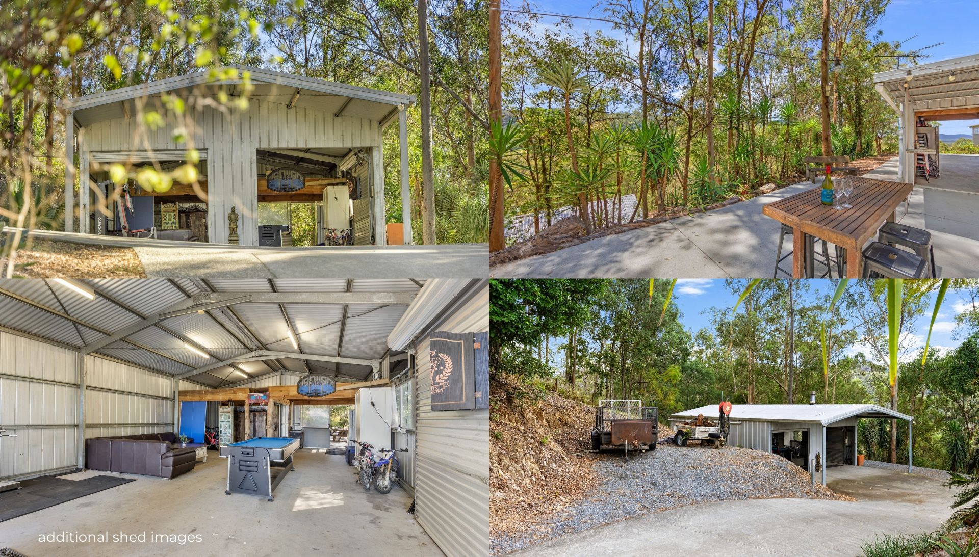 • Four-bay workshed (10.4m x 7.0m) with 3 x roller doors & covered 2 bay carport/drive through.