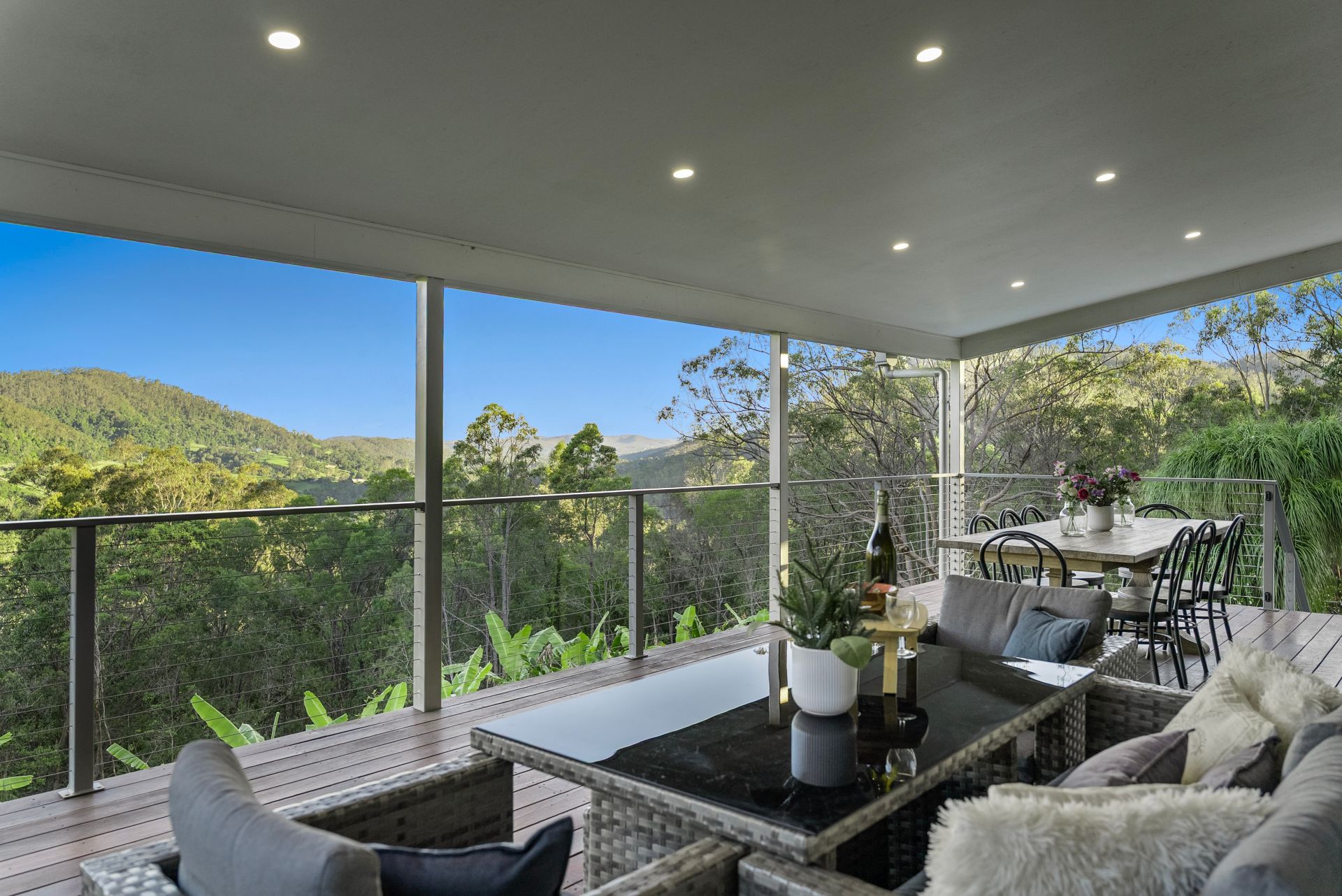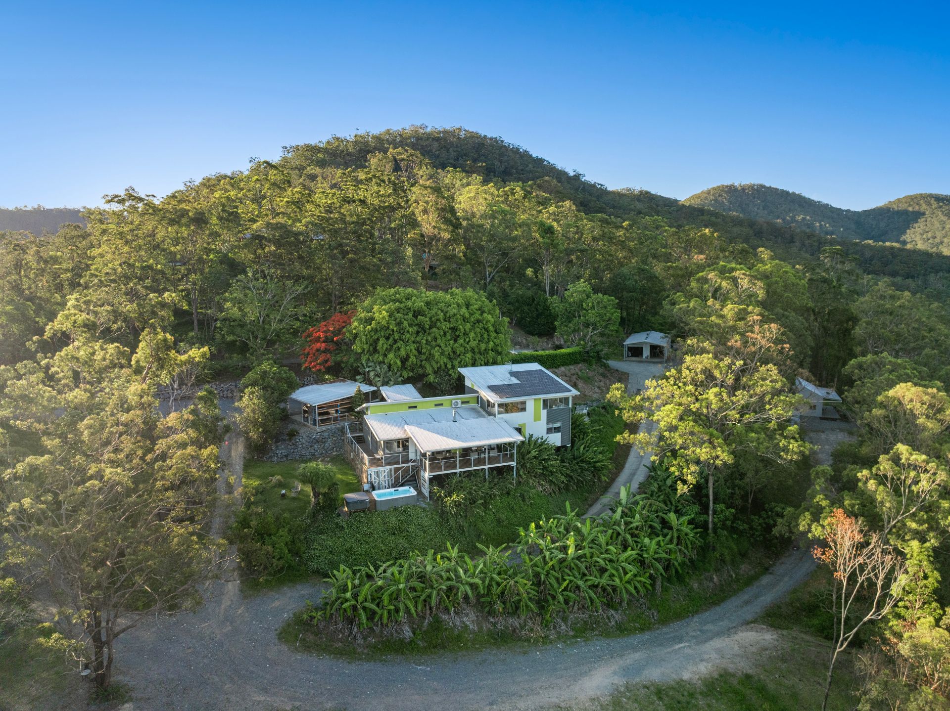 Perched high amongst the treetops of Wongawallan, 11 Coonardoo Court offers a rare opportunity to live in harmony with nature without compromising on space or luxury. Elevated to capture uninterrupted vistas across the valley, this remarkable residence combines a spacious five-bedroom main home and extensive multi-use infrastructure, creating the perfect estate for potential future combined family living.