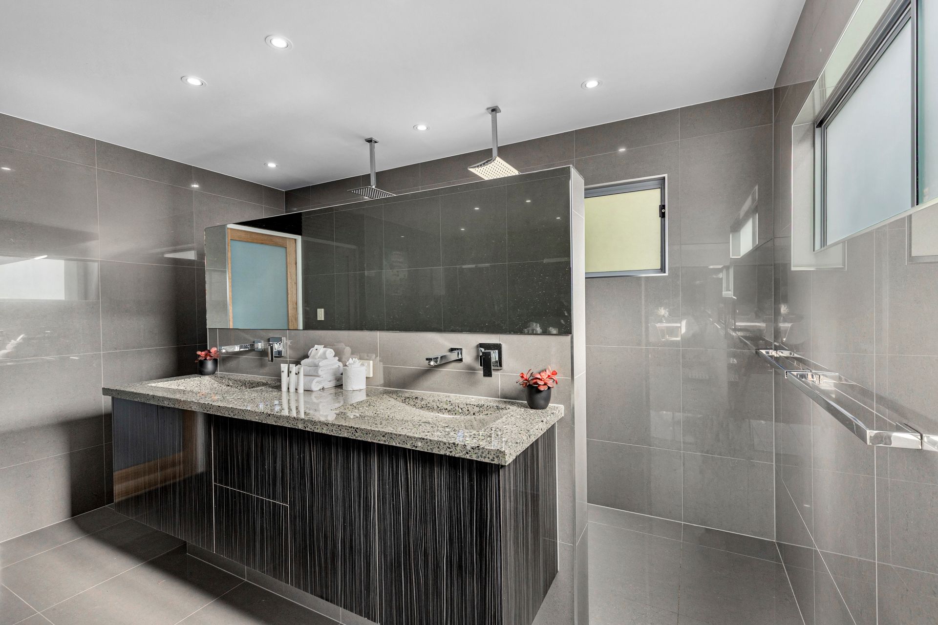 - Luxury ensuite with spa bath, dual vanities, hidden shower with rainwater shower head feature and huge fully fitted walk-in robe.