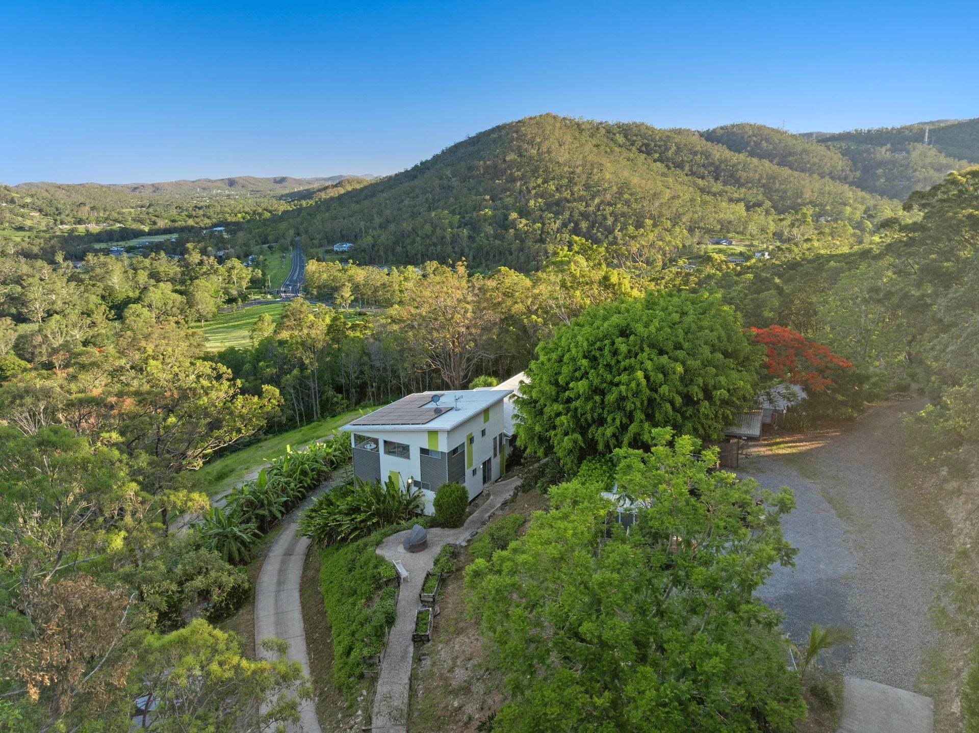 Surrounded by lush greenery and panoramic views, this property offers the ultimate tree-change. A peaceful sanctuary within 15 minutes of Upper Coomera and Oxenford, 30 minutes to the beach, and within easy reach of Brisbane.
